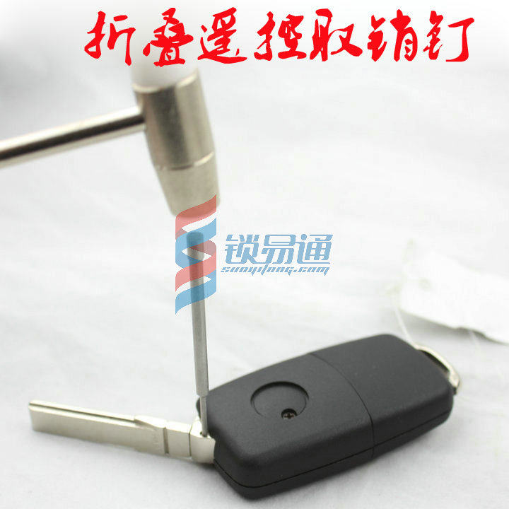 或者直接拆开折叠钥匙,把带有钥匙胚的转头放在钳子中间,用取销针直接敲出里面的空心卡销,取出钥匙胚